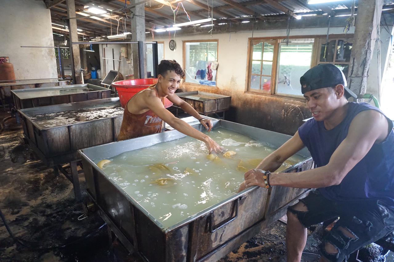 3. Straining and concentration: Once the color compounds are extracted, the liquid is strained to remove any remaining plant particles. The liquid extract will be transferred to a storage place while the leaf waste will return to the plantation to become compost.