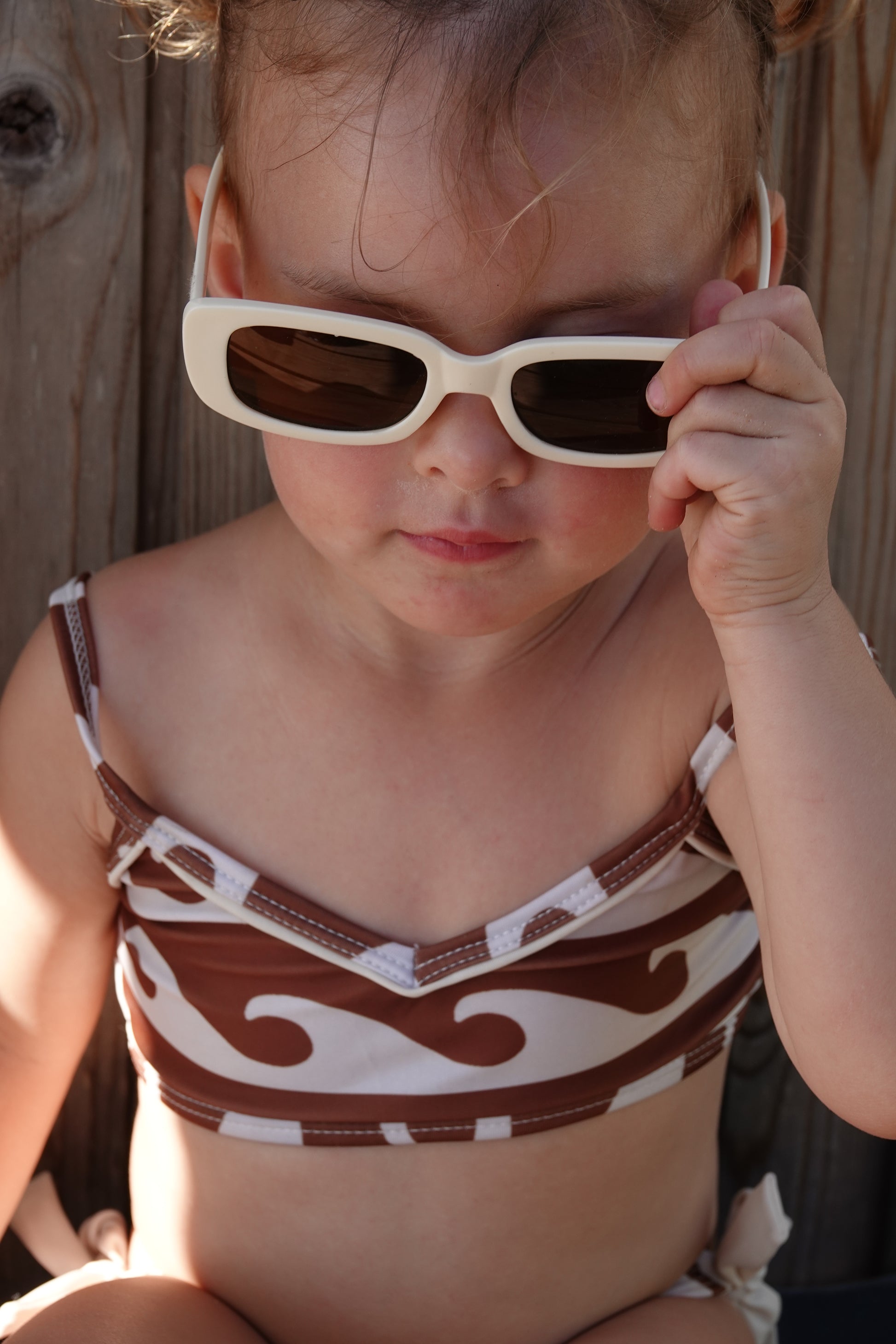 Our signature kids bikini reimagined in a brown waves print inspired by the ocean, movement, and sun-washed days by the sea. Designed for comfort and freedom, it offers the same trusted fit as our previous bikinis, with a new earthy pattern that feels timeless and easy to wear.