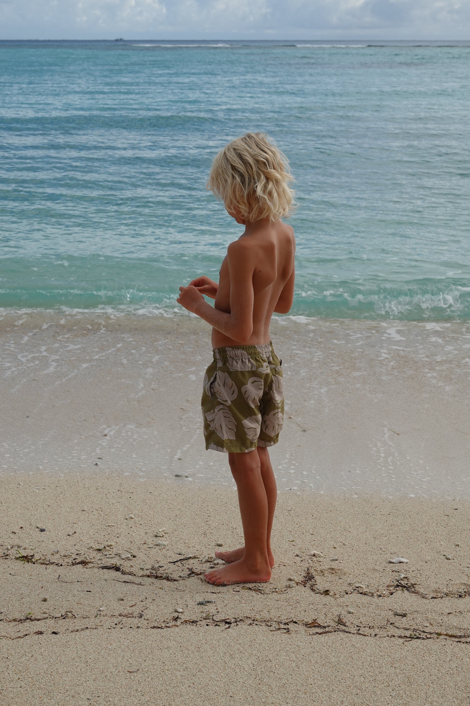 Light and easy shorts designed for both swim and play. Made from recycled polyester, they’re quick-drying and comfortable for all-day wear. Finished with an elastic waistband and practical side and back pockets, they feature a green monstera leaf print inspired by lush island nature.